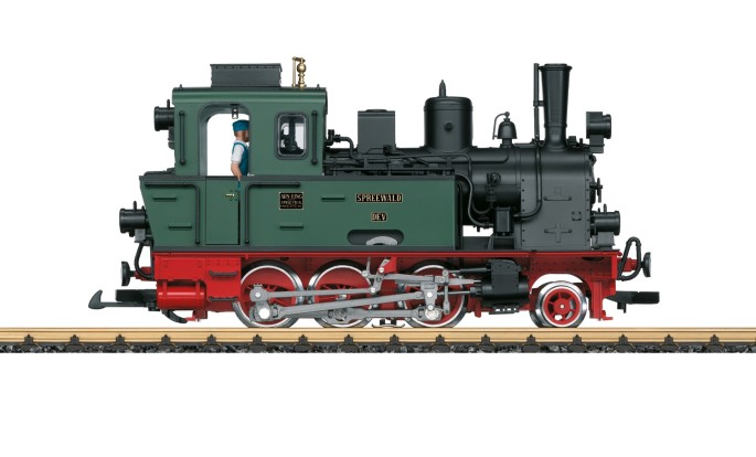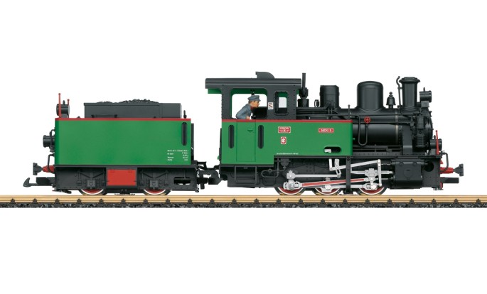 Die Lok fährt auf 750 mm Spurweite und besitzt daher einen Außenrahmen mit dahinter liegenden Fahrwerk. In dieser Farbgebung erscheint diese Bauart erstmalig im LGB Sortiment.